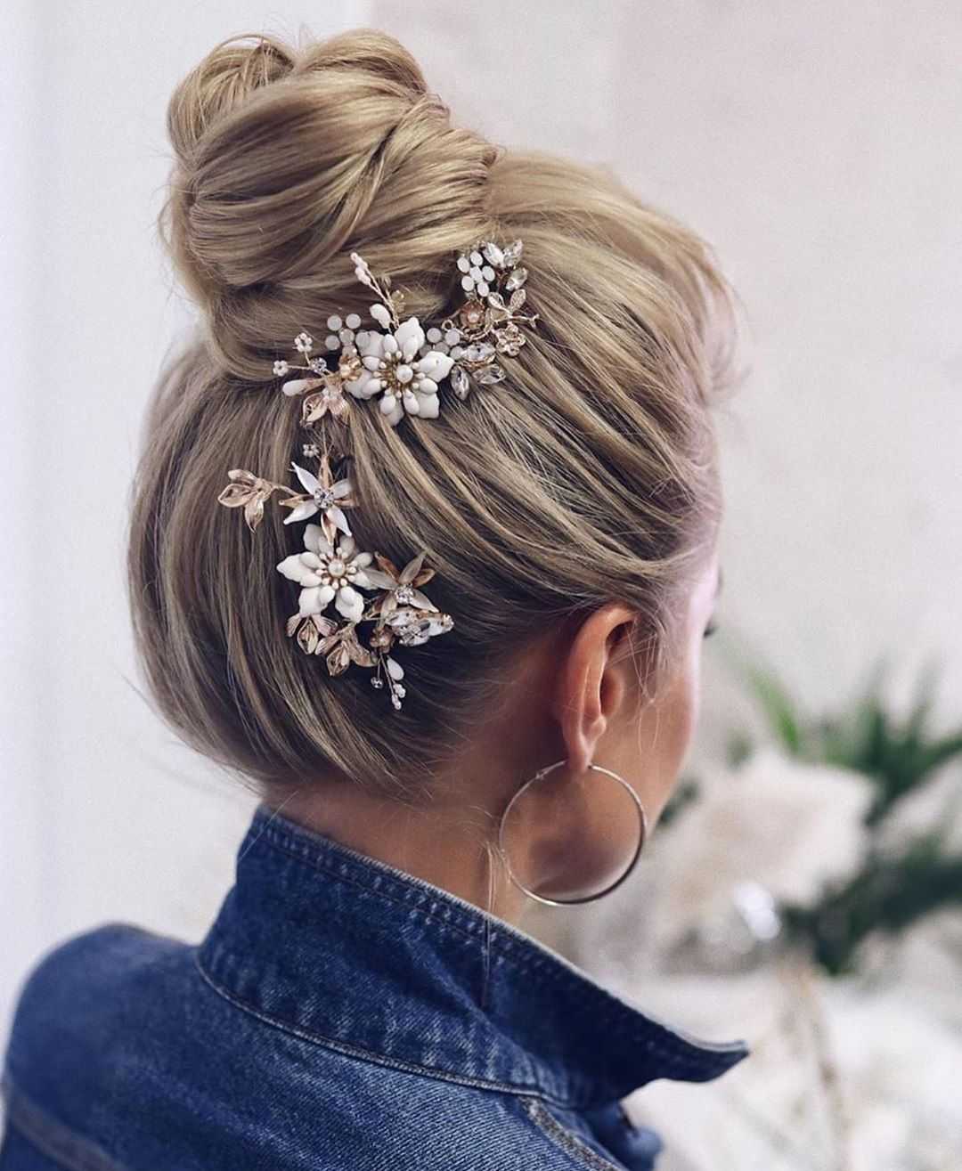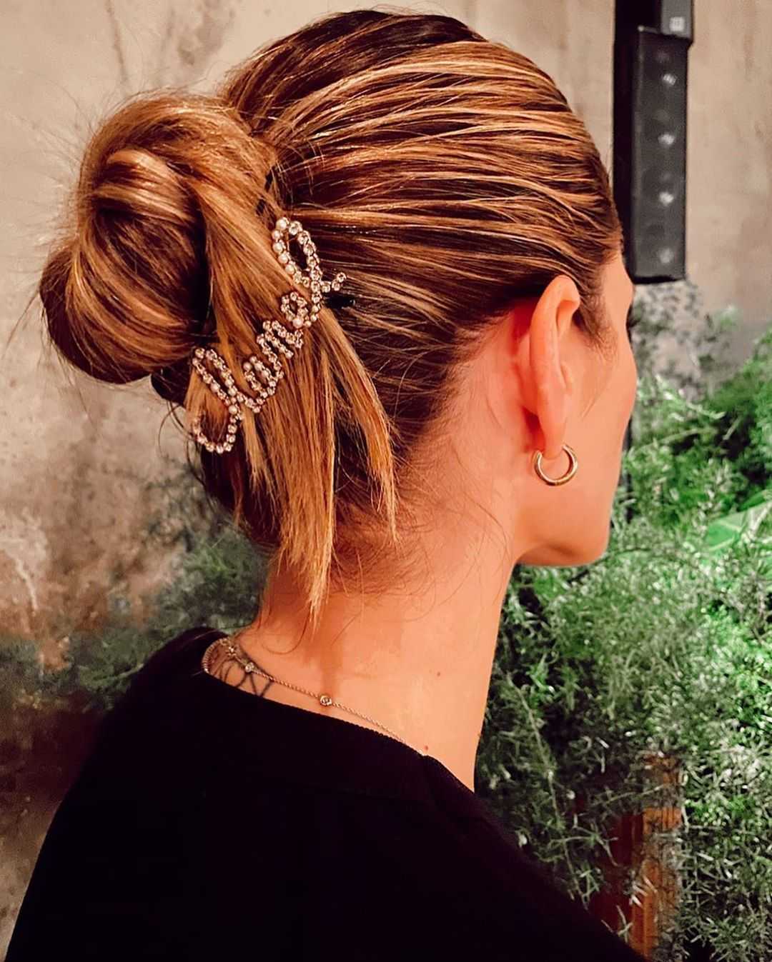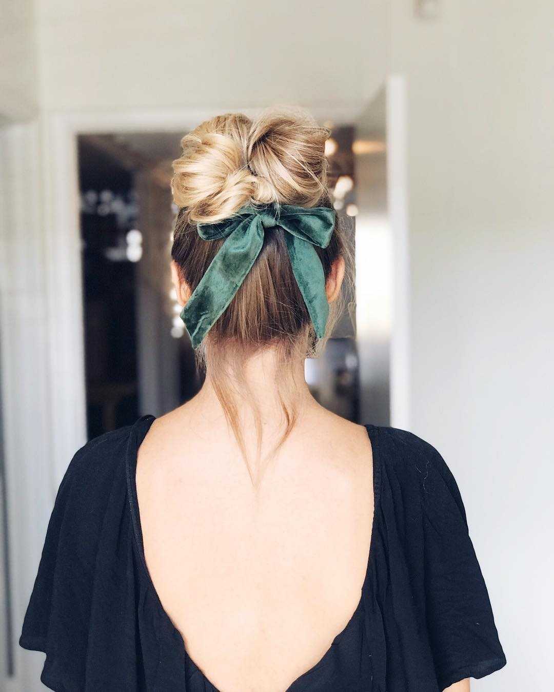 С помощью бублика можно собрать красивый, элегантный пучок, который отлично впишется в элегантный образ. Украсить его можно различными декоративными элементами: шпильками, заколками, лентой.