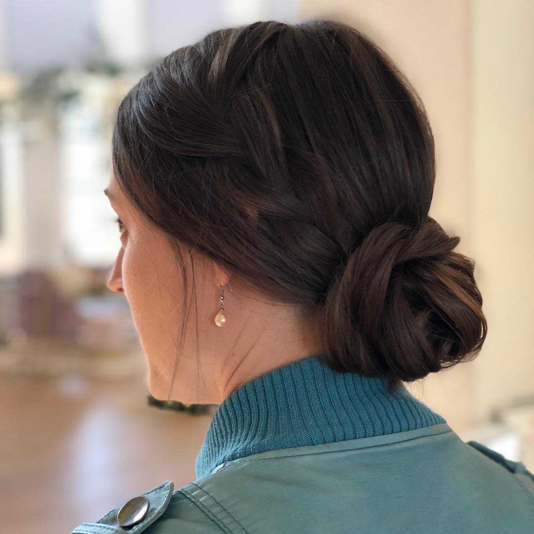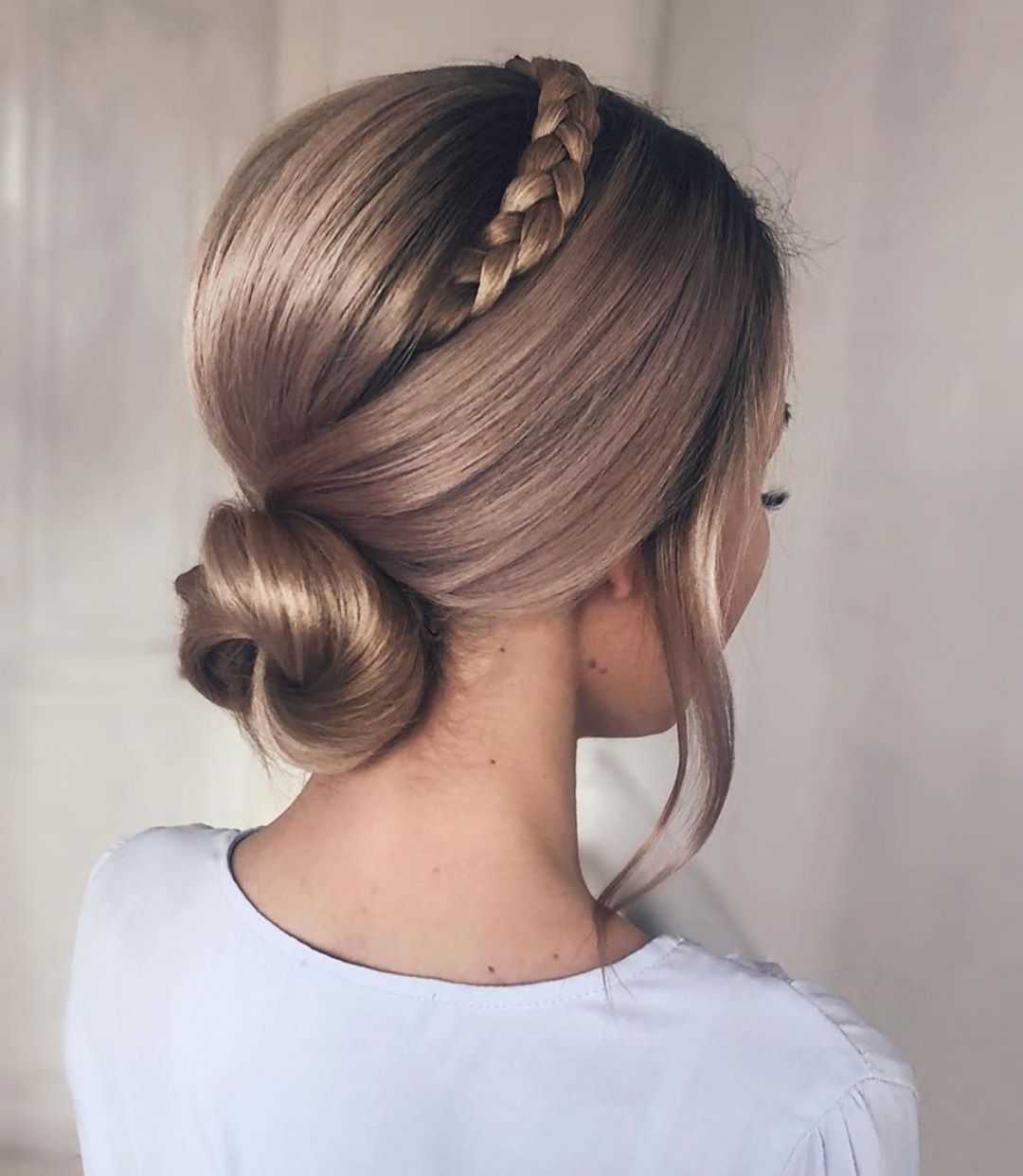 Пучок с косой. Такая прическа выглядит незаурядно и интересно. Даже самая обычная косичка, обвивающая пучок, придаст образу нежный, женственный и воздушный вид. При этом косичка может быть заплетена по любой технике. Это может быть вариант состоящий из трех, четырех, пяти прядей, рыбий хвост или колосок.