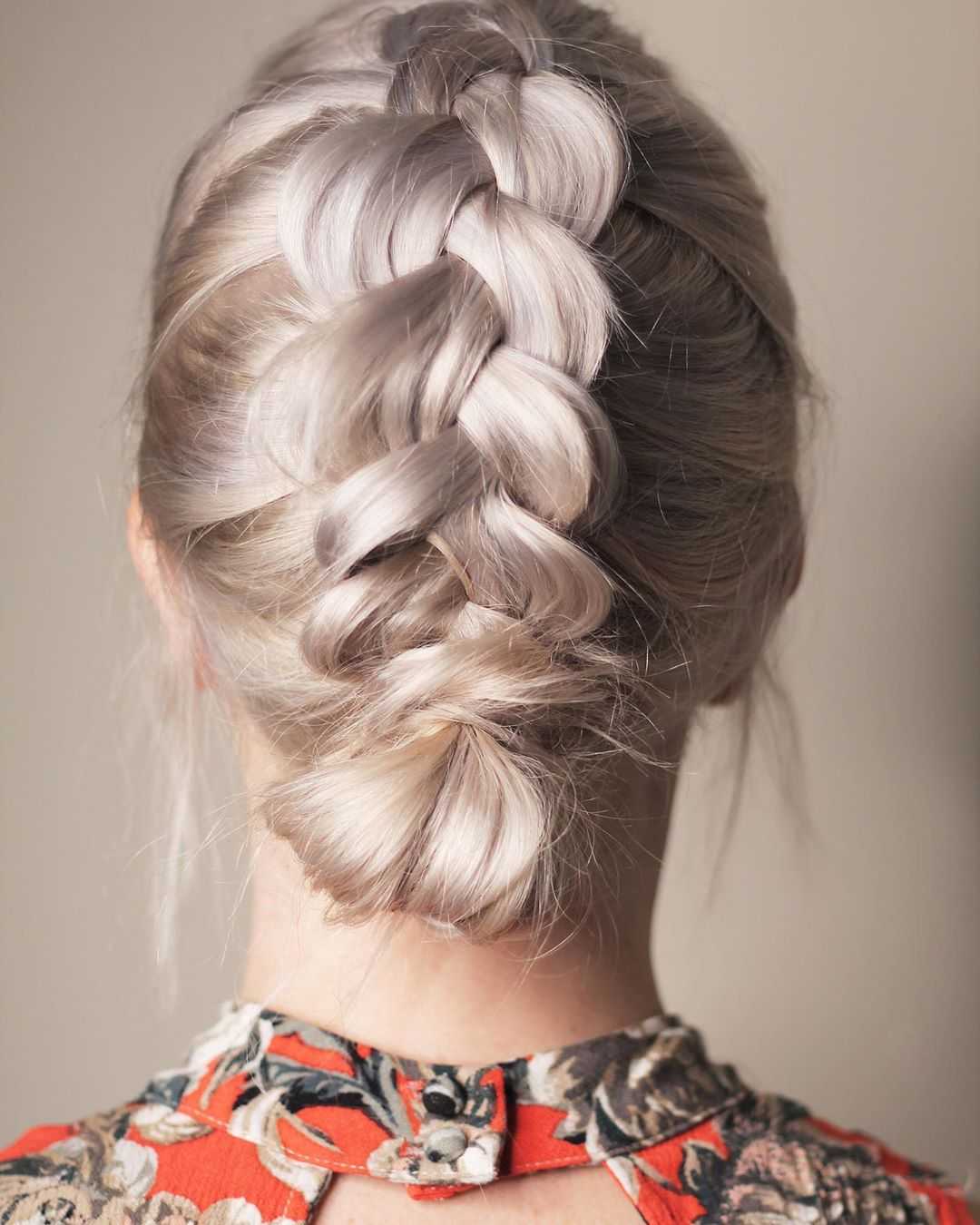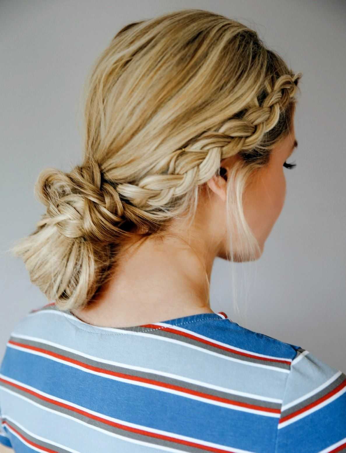 Это самая простая и в то же время быстрая прическа из описанных выше вариантов. Если немного потренироваться, то пучок из кос можно будет выполнять всего за пару минут. Она подойдет на разную длину волос. Если готовая прическа получится слишком простой, можно украсить ее любым подходящим аксессуаром.