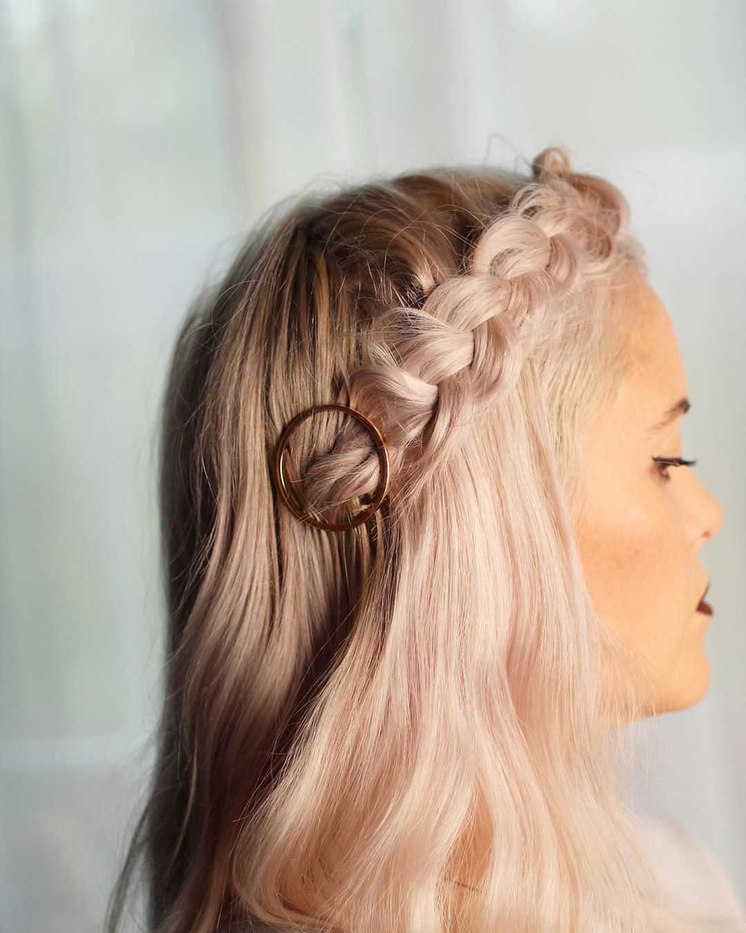 Ободок. Это очень эффектная и нежная прическа из косичек, которая подойдет обладательницам гладких и вьющихся прядей. С боков нужно отделить по пряди, которые расположены максимально близко к вискам, и сплести косы. Затылочную область следует начесать, сформировать ободок из кос и зафиксировать заколками. Плетение может быть разнообразным.