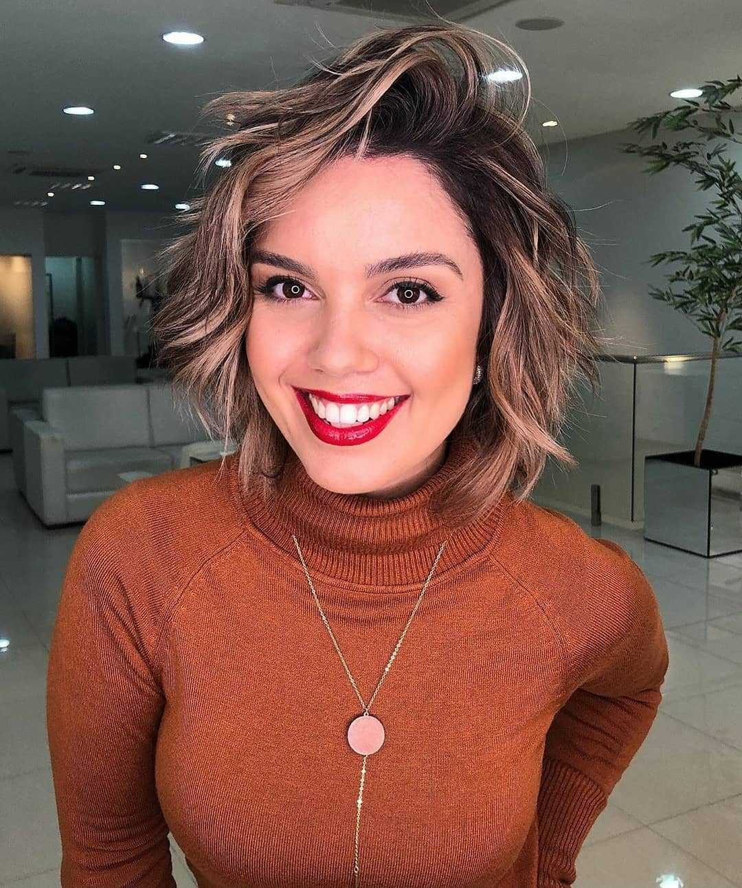 - Девушкам, которые любят короткие волосы, нужно стараться максимально создавать объем. Также подойдут стрижки каскад или каре с пробором набок. Не нужно выбирать густые челки, химические завивки и прямой пробор.