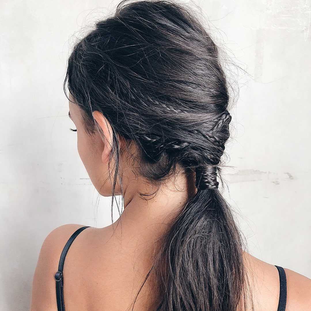 - хвост со жгутом – эту прическу с натяжкой можно отнести к плетению, однако, она может быстро и аккуратно собрать и зафиксировать волосы