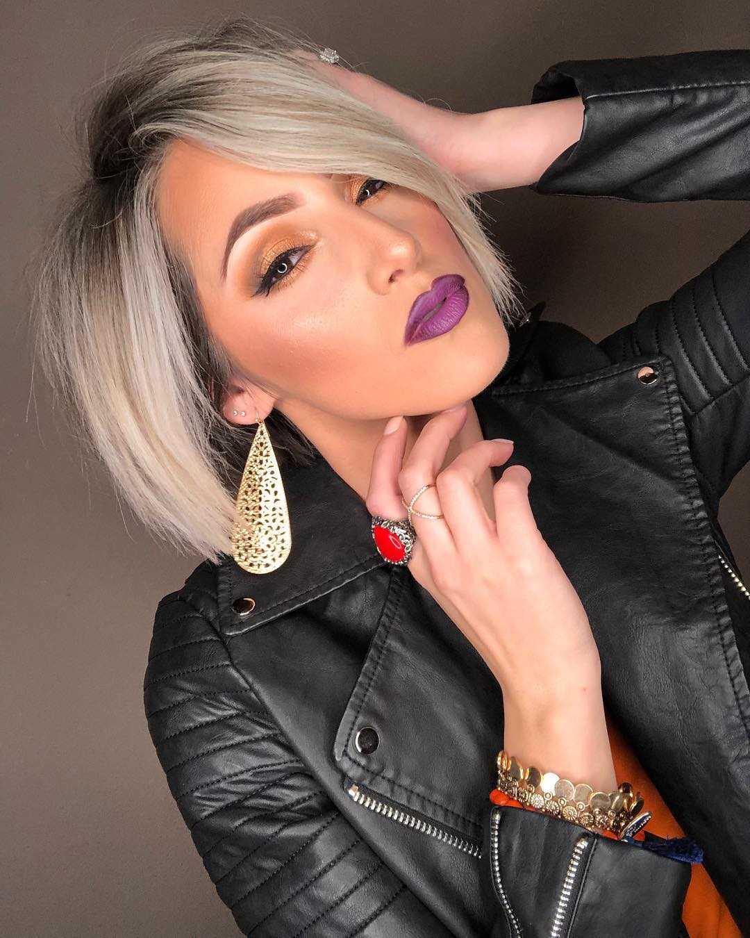 А также придает таинственности взгляду. На фото справа у девушки растрепанная укладка, что придает озорства и дерзости. Этот эффект усилен макияжем смоки айс. Стрелки на глазах дополнительно удлиняют овал лица. А ассиметричная челка скрадывает лишнюю вытянутость. В целом все детали образа гармонично дополняют друг друга.
