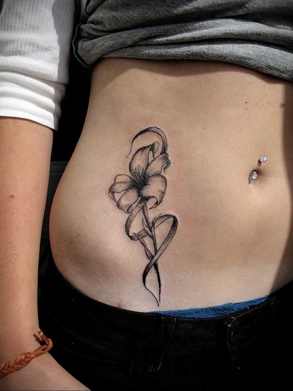 Символика татуировки ленты на животе имеет множество значений. Часто лента олицетворяет любовь к родителям, семейные узы или память о близких людях, которые ушли из жизни