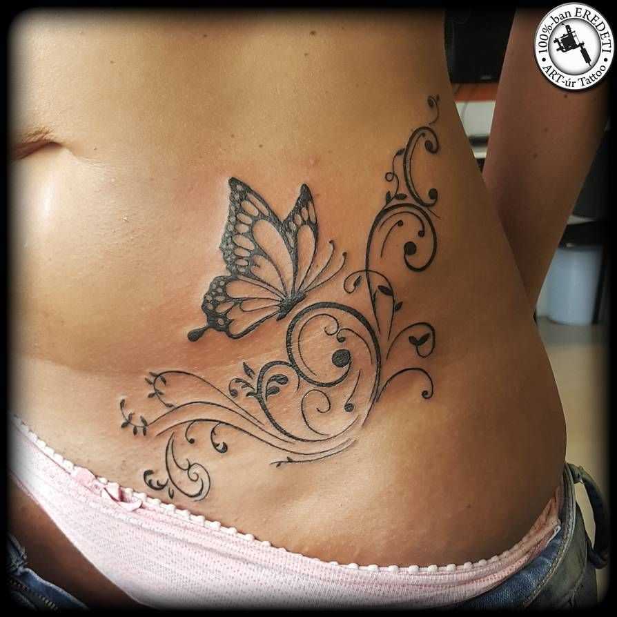 Татуировка бабочки на животе для женщин