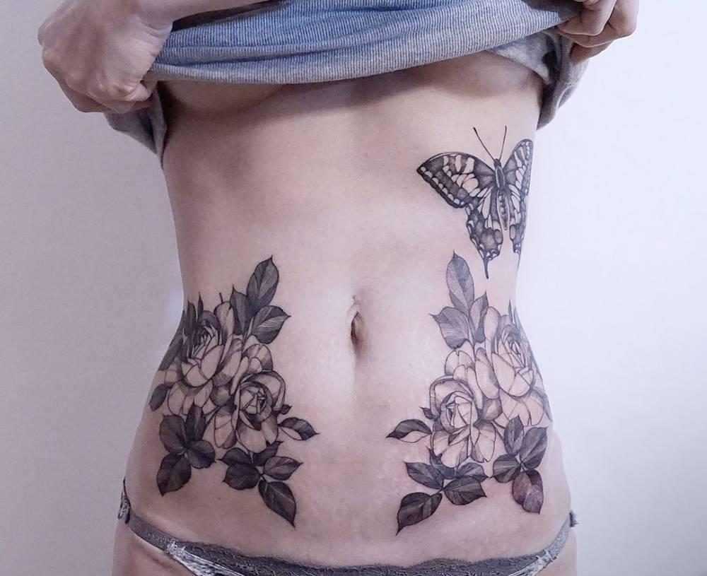 Темы татуировок, скрывающих растяжки на животе.