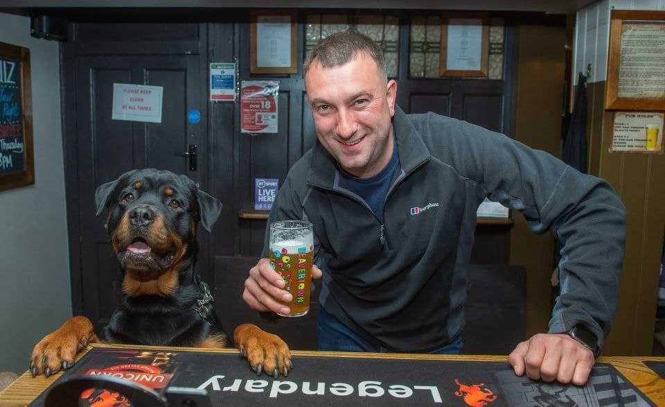 Его зовут Вуди, ему 18 месяцев, и недавно он попал в британские таблоиды, потому что сбежал из дома. Его хозяин, электрик Марк Ховарт из Стокпорта, два раза в неделю ходит с псом в The Horse Shoe Inn, чтобы прибухнуть там в хорошей компании. Вуди стал местным любимцем и тотемным животным заведения. Его здесь подкармливают вкуснотой, разрешают шкодить и постоянно гладят. В общем, неудивительно, что для него походы в паб — лучшее время в жизни (полагаю, для хозяина тоже).