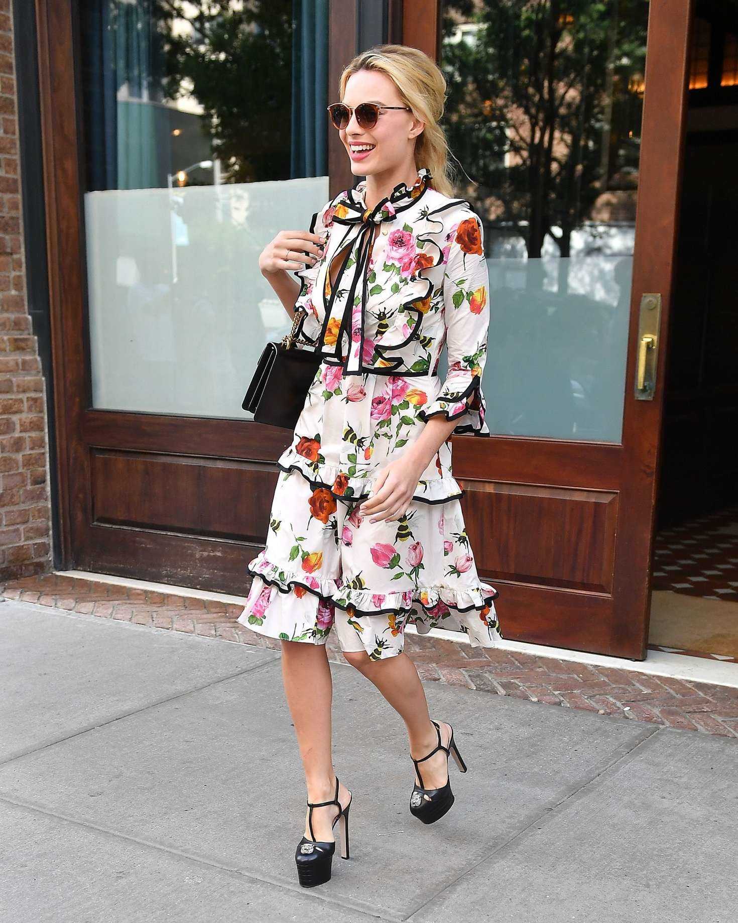 Платье стандартного кроя с цветочным принтом будет неповторимым и оригинальным решением. Если вы добавите к нему бежевые туфли на высоком каблуке, кошелек на цепочке и изысканные украшения, оно приобретет солидность. Смелые дамы могут рассматривать для себя длинное платье с разрезом, которое лучше всего сочетается с босоножками на каблуке и мужским пиджаком оверсайз.