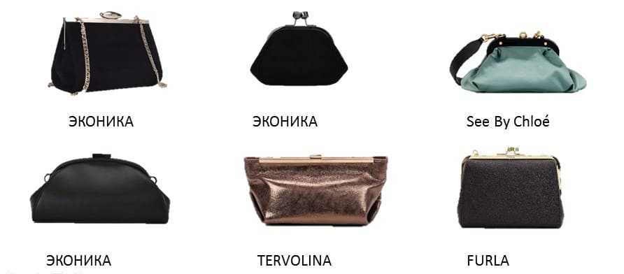 Масс-маркет быстро подхватил новую моду на сумку пельмень. Zara, Mango и другие ритейлеры предлагают похожие фасоны по приятным ценам. Реплики выглядят очень достойно, но отличия видимы невооруженным глазом. Последователи Боттега Венетта заменили магнитную раму изделия молнией, что никак не портит внешний вид, а создает новую модель а-ля пельмень.