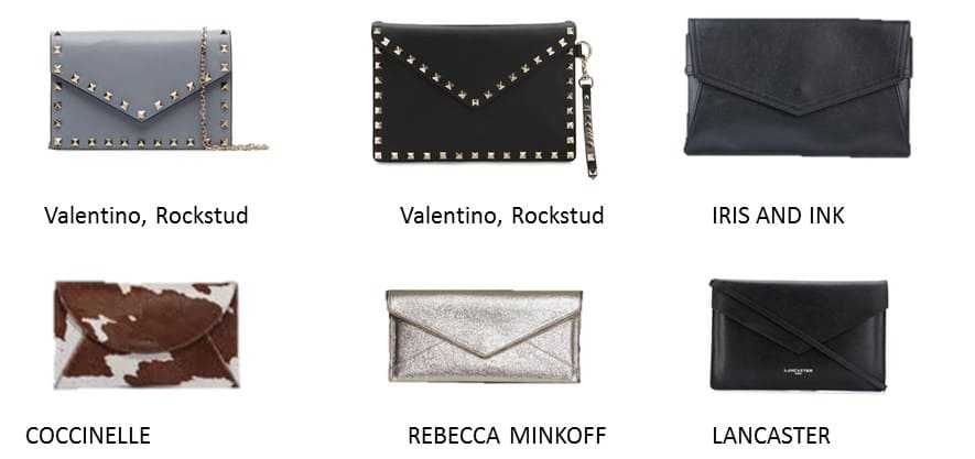 Клатч-конверт (envelope) имеет клапан-крышку в форме треугольника. В запечатанном, а точнее в закрытом виде он действительно напоминает обычный почтовый конверт. К слову сейчас это не самая актуальная модель клатчей.