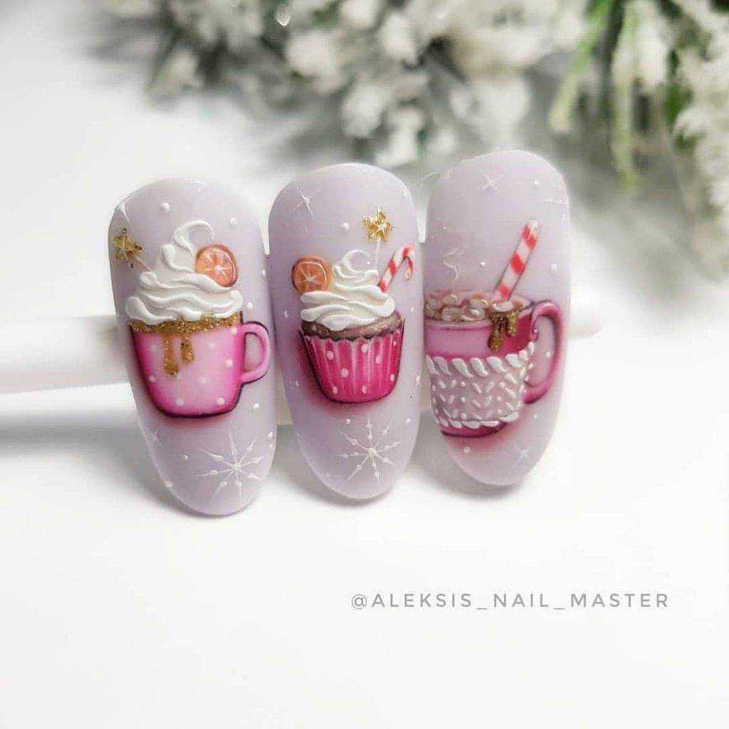 Трендовыми вариантами вязаного маникюра 2021-2022 стали дизайны с рисунками, в которых вязка выполняет декоративную роль. Если в маникюре присутствуют изображения вязаных вещей (варежка, шарф, шапка, свитер и т.п), то их декорируют вязкой.