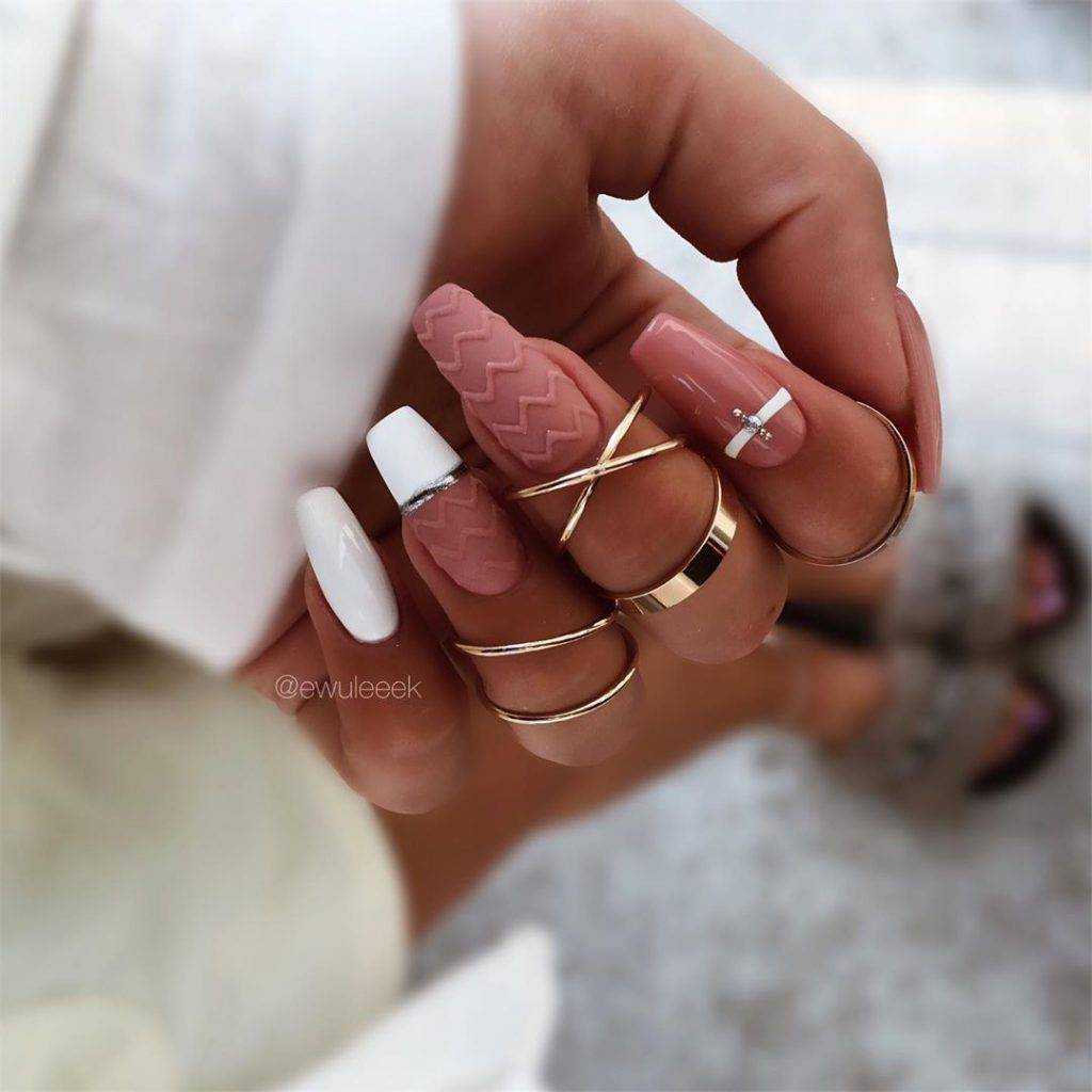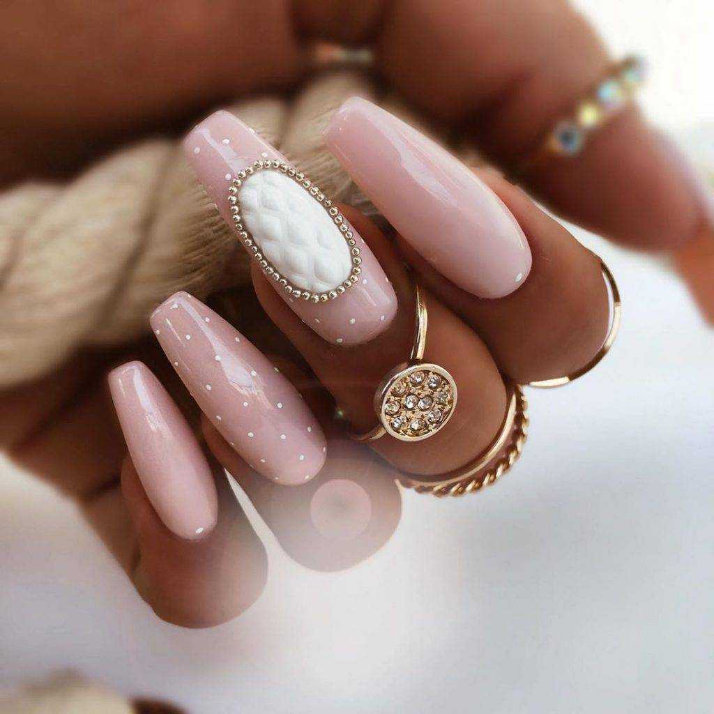 Мягкие светлые тона идеальны в дизайне маникюра свитер. Нежно-розовый, голубой, нюдовые и бежевые тона даже в монохромном вязаном маникюре 2021-2022 смотрятся очень привлекательно.