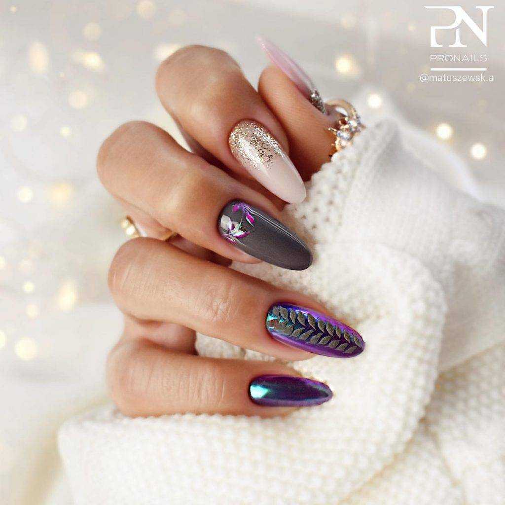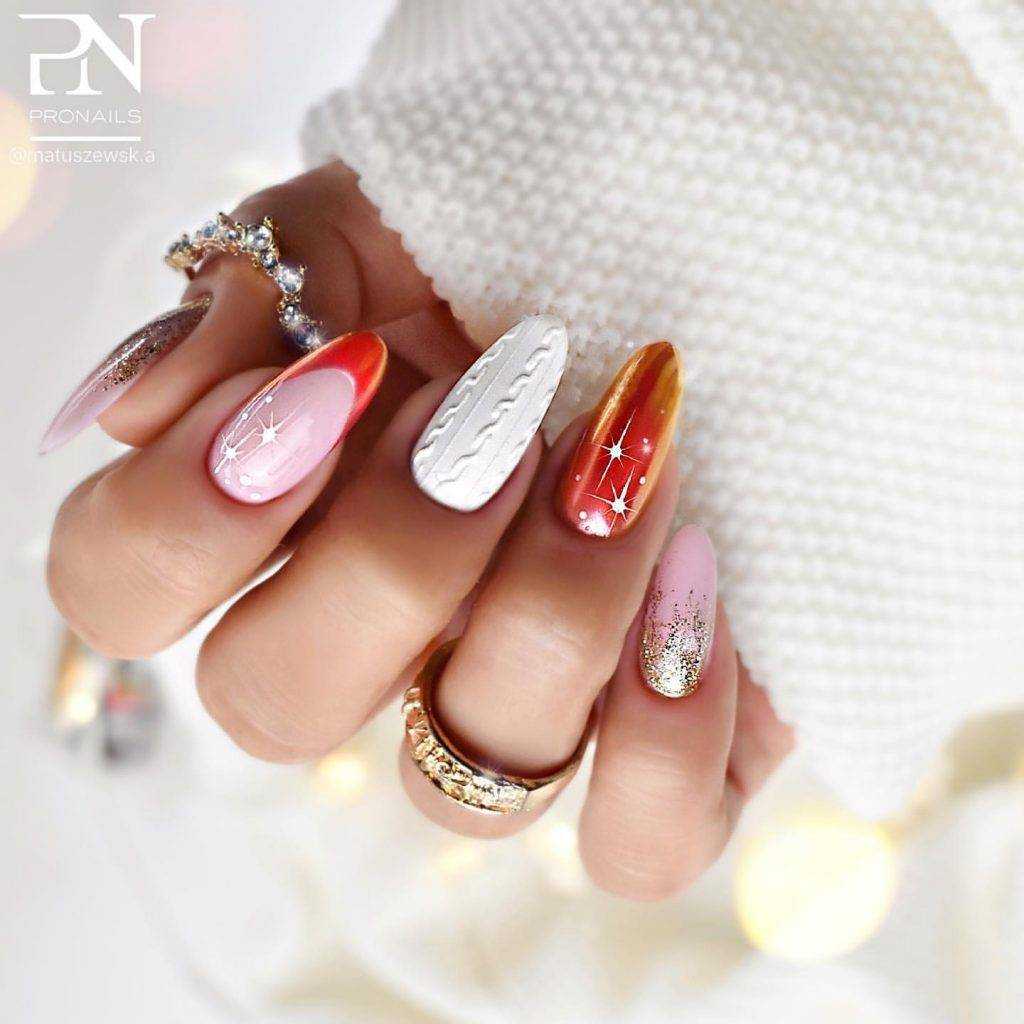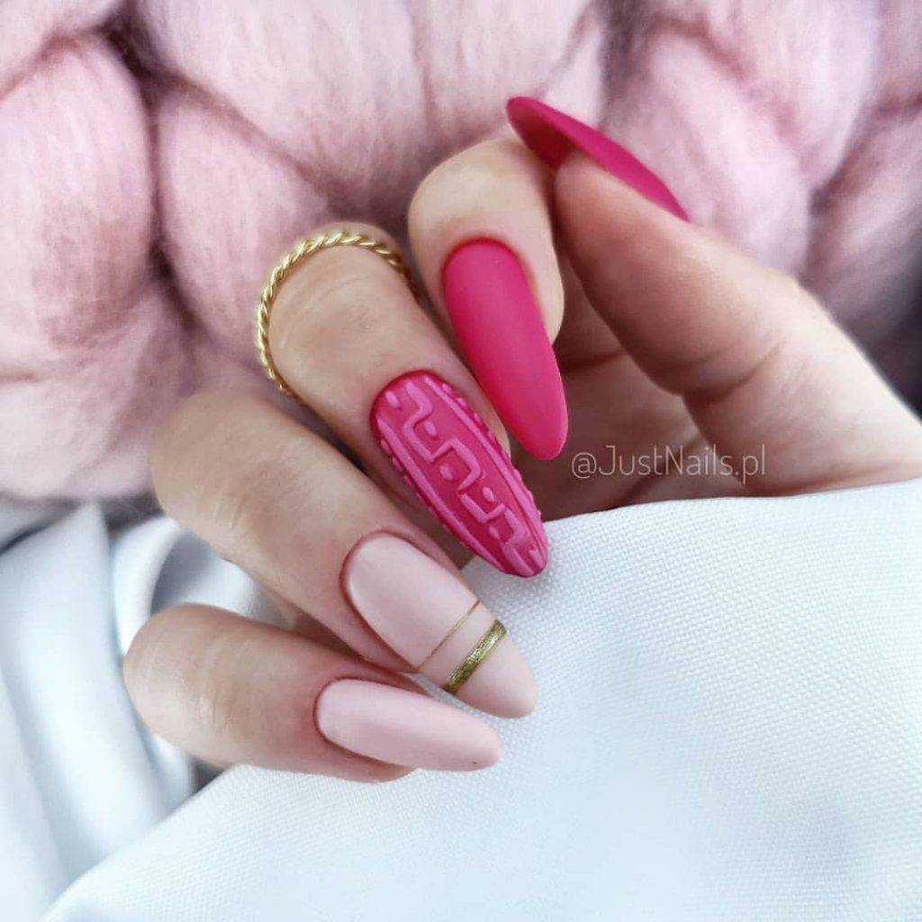 Среди самых очаровательных идей маникюра 2021-2022 с вязаным эффектом всегда найдутся варианты с изюминкой или ярким акцентом. Легкий переход одного оттенка в другой, иначе именуемый градиентом может очень даже неплохо подчеркнуть вязаный дизайн маникюра.