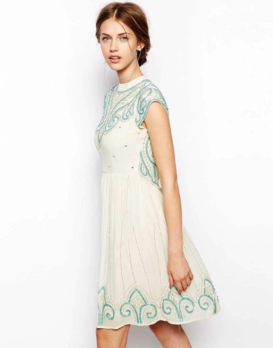 Более коктейльные варианты модных платьев-комбинаций есть в Zarina – одна модель с нитями люрекса, а другая – с пайетками.