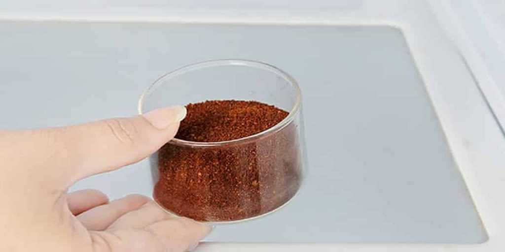 Это средство можно использовать как в профилактических целях, так и для выведения запаха. Необходимо взять 2 небольших пакетика молотой корицы, высыпать ее на блюдце и добавить уксуса до пастообразной консистенции. Полученное средство надо переложить в маленькую баночку, в крышке которой предварительно требуется сделать отверстия. Емкость с корицей и уксусом необходимо разместить на полке холодильника. Периодичность замены смеси — 1 раз в 2 месяца.