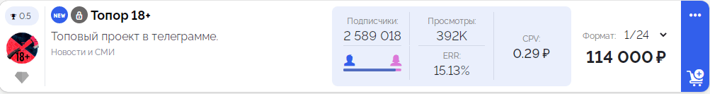 Например, канал «Журналистика» насчитывал 6 000 фолловеров, и цена за одну рекламу была около 5 000 рублей. Некоторые каналы у которых 1000+ просмотров на посте в сутки продают рекламу по $50 за пост.