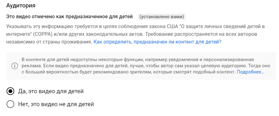 При публикации новых видеороликов проходите самосертификацию, указывая, что контент предназначен для детей