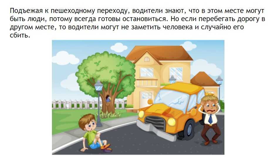 Детям часто не хватает терпения, иногда они могут перебежать дорогу, чтобы побыстрее оказаться на другой стороне улицы. Дети часто выбегают на проезжую часть, когда во что-то играют. Родители должны разъяснить детям, что ходить по дорогам и перебегать их в неположенных местах нельзя.