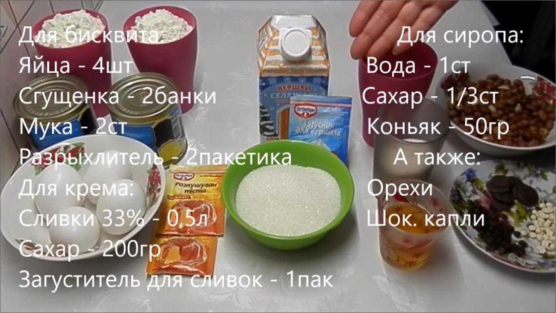 Видео о том, как сделать бисквитный торт со сгущенкой и бананами