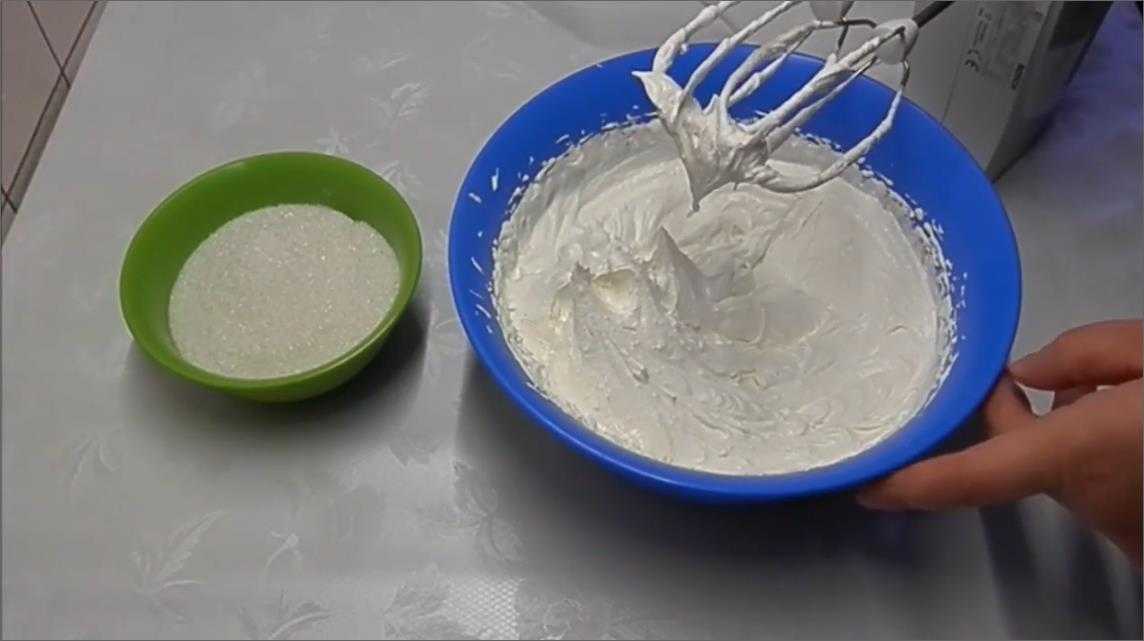 6. Для крема взбить до пышности сметану со сгущенкой.