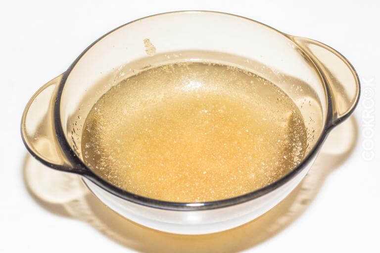- В воде растворяем желатин, затем греем (но не кипятим) на огне.