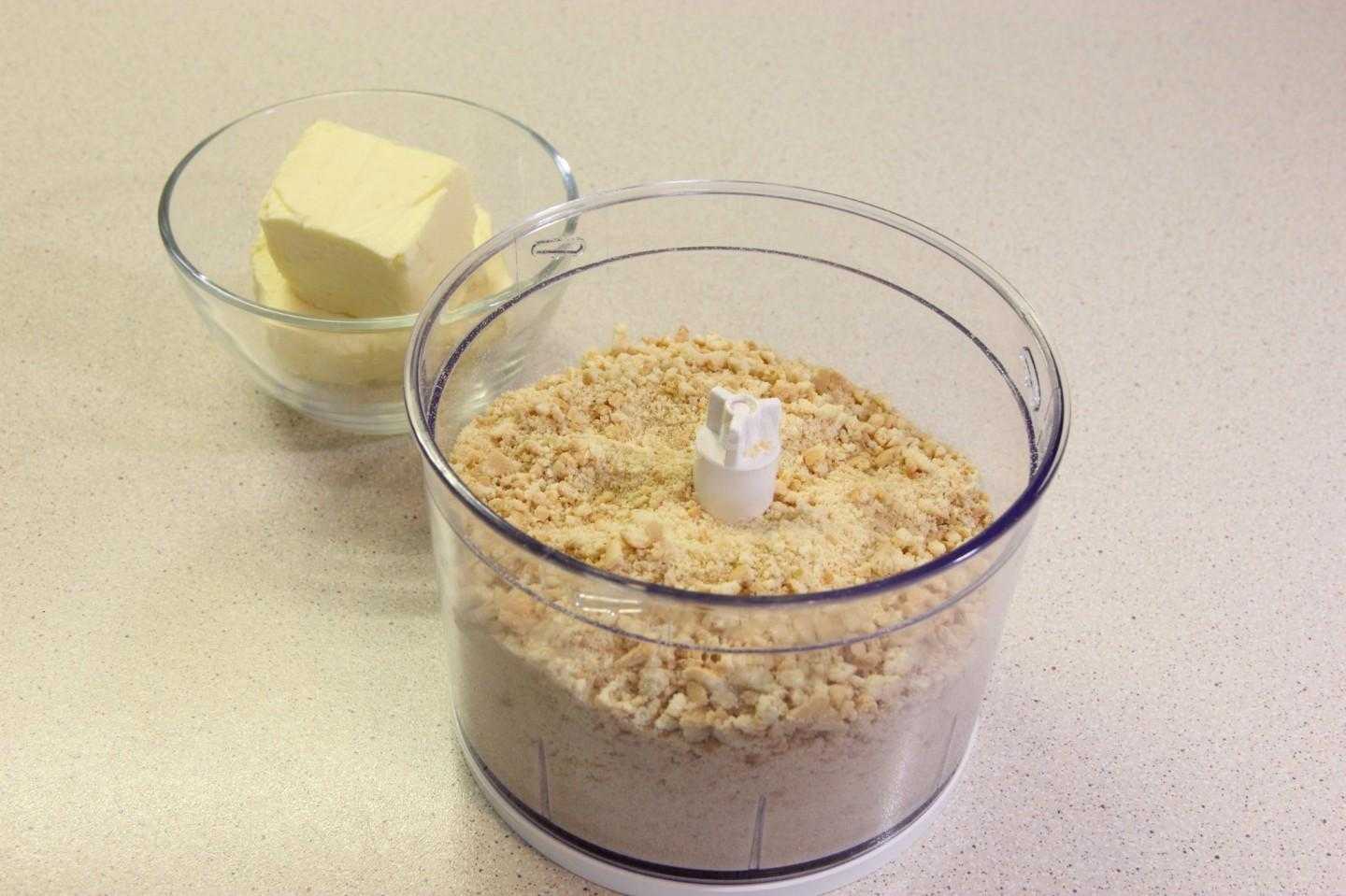 Снимаем с остывшего арахиса шелуху. Ссыпаем орехи в измельчитель блендера и несколько раз включаем аппарат на турбо-режиме. Не стоит измельчать в муку, желательно получить небольшие кусочки.