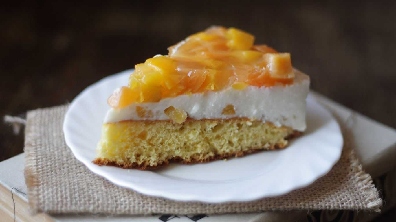 В приготовлении торта, если в рецепте не указано иное, можно использовать как консервированные персики, так и свежие.