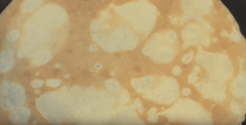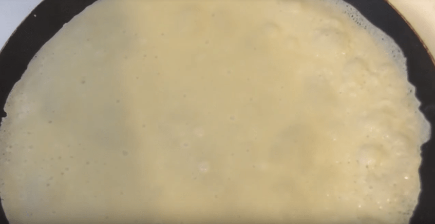 - Жарьте блины с одной стороны до золотистого цвета, затем переверните и жарьте с другой стороны.