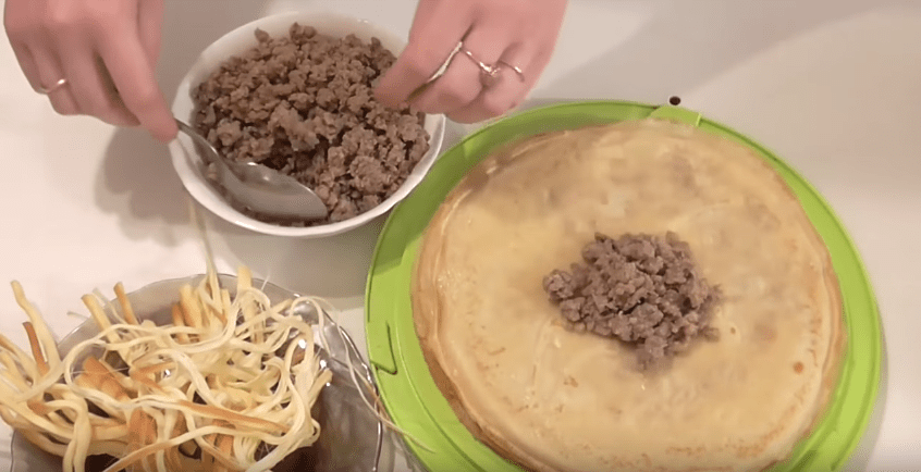 Блинчики с мясом и рисом: мягкие и нежные на молоке