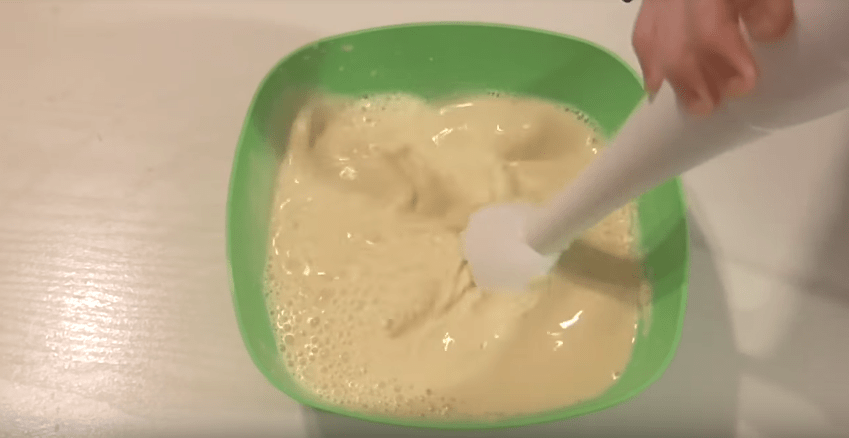 1. Для начала готовим блинное тесто. Для этого соединяем все указанные ингредиенты в одной глубокой миске и взбить их блендером или миксером до однородной массы.