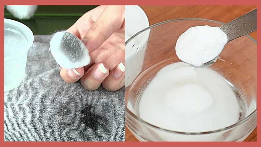 - Перекись + нашатырь — для того, чтобы приготовить еще одно средство для удаления чернильного пятна следует в стакан воды налить в равных пропорциях перекись и спирт — по одной чайной ложке будет вполне достаточно. В этом растворе следует вымочить не очень большой кусок ваты и приложить его к испачканному месту. Этот кусок ваты следует подержать на пятне некоторое время, после чего производится самая обычная стирка