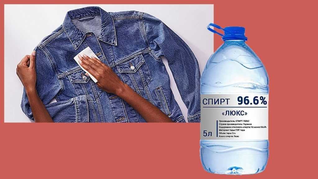 - спирт и хозяйственное мыло – сначала пятно замывают медицинским спиртом, затем намыливают густо хозяйственным мылом и оставляют на ночь. Утром споласкивают и выстирывают с порошком. Такой метод хорош для денима и плотных тканей.