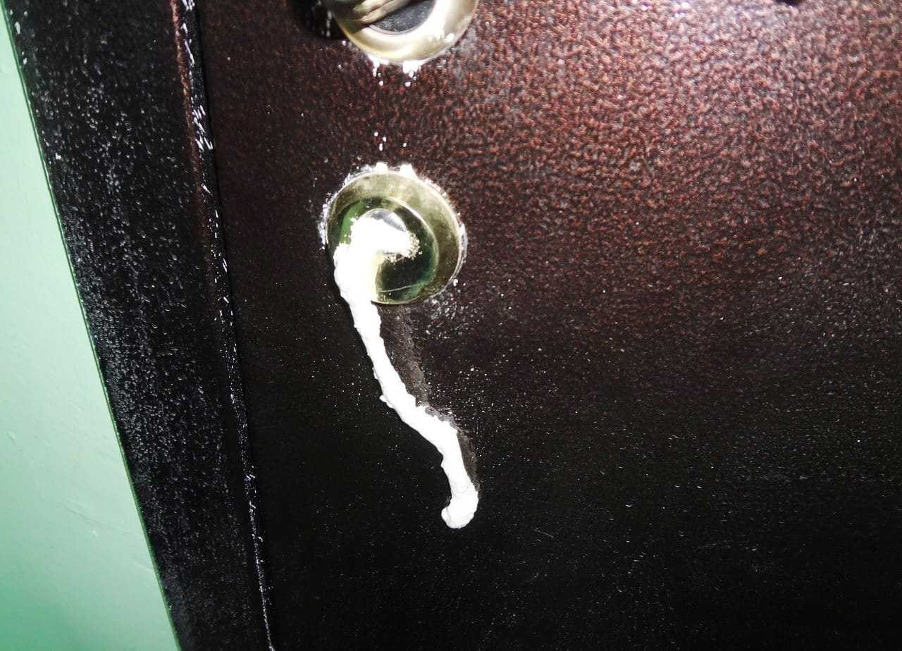 Для борьбы с пятнами пены на металлических и железных поверхностях, например, входной двери, используют двухуровневую обработку: