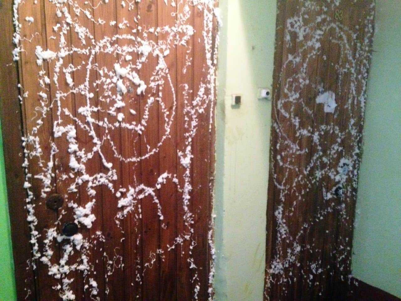 Чаще всего монтажная пена попадает на окна и двери при установке, вставить дверную коробку без загрязнений почти невозможно. Деревянные поверхности обычно покрываются лаком или краской, агрессивная химия может повредить глянцевое покрытие.