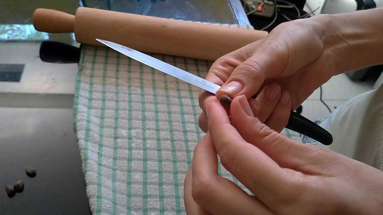 Следующий по популярности способ с помощью обычного кухонного ножа: