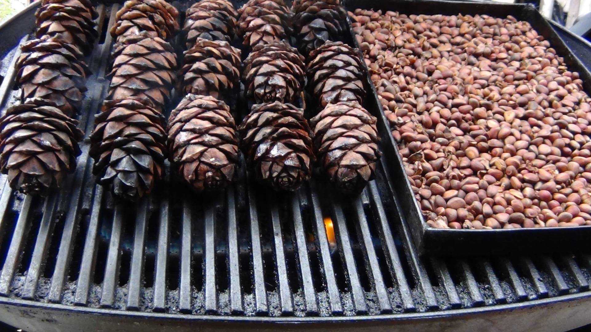 Орехи обжариваются либо в духовке, либо на открытом огне. В процессе обжарки скорлупа становится очень сухой и с легкостью счищается.