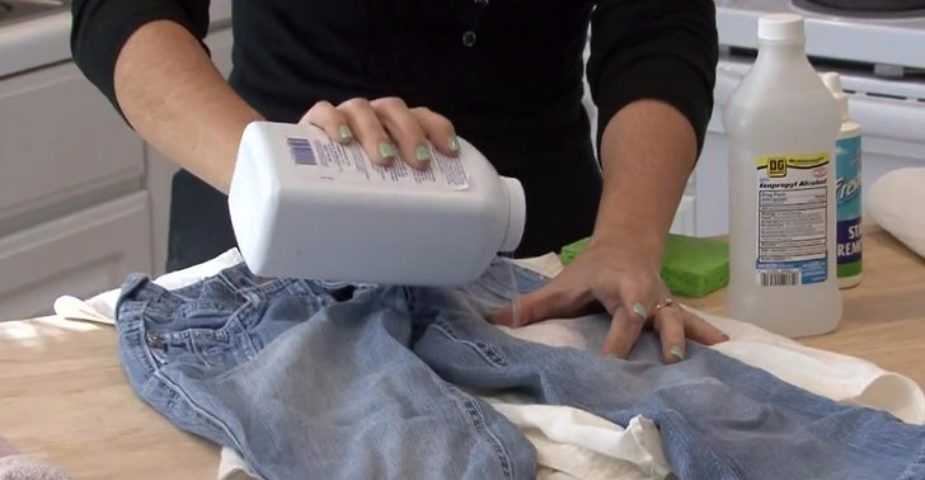 Аммиак. В 150 мл теплой воды растворите 30 миллилитров аммиака, данный метод лучше применять для светлых тканей. Затем смочите в приготовленном растворе ватный спонж и обработайте след. Тампон необходимо менять по мере загрязнения. Если чистка не дала результата, разложите изделие на ровной поверхности, проложите с двух сторон ненужной тканью и прогладьте на средней температуре. Самое последнее, что нужно сделать — постирать в машинке, предпочтительнее на интенсивном режиме.