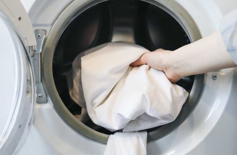 - если на простынях есть пятна, то выведите их специальным средством перед стиркой;