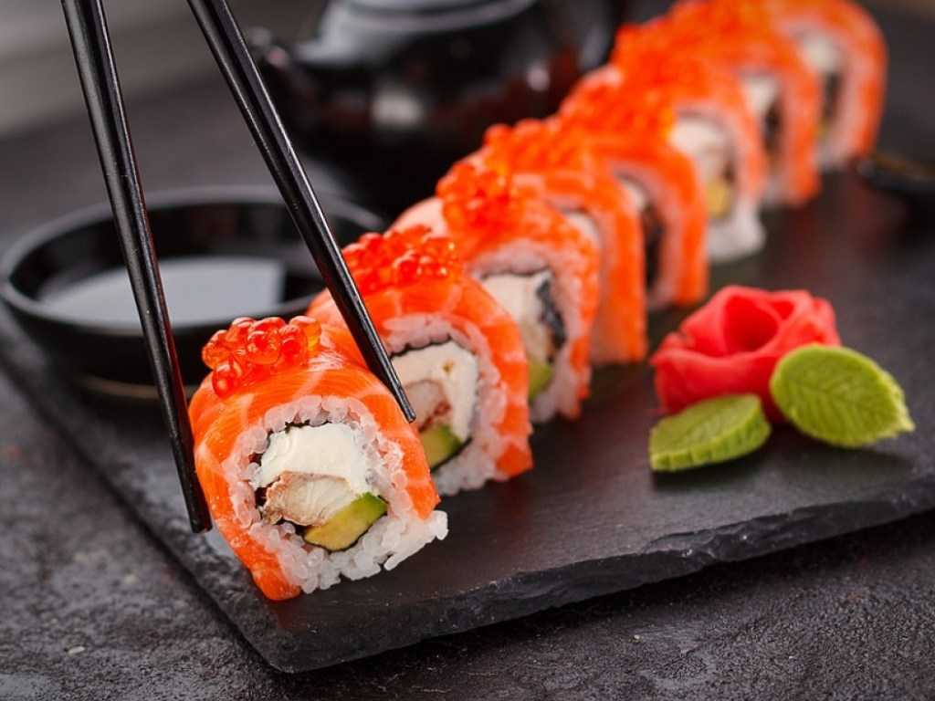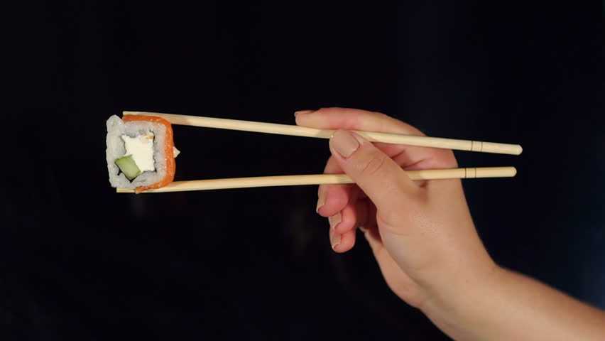 Рекомендуется пригнуться поближе к столу, чтобы сократить расстояние до еды, чтобы на начальном этапе освоения палочек не замазать стол и не набросать на него суши или роллов. Как научиться есть палочками роллы? Все точно также – главное освоить хват палочек и немного потренироваться. Можно для начала брать небольшие роллы, чтобы они имели меньший вес, объем и были более просты при работе с палочками. Когда вы научитесь правильно кушать палочками и будете делать это без проблем, тогда итак вкусные роллы будут ещё вкуснее, потому что вы будете наслаждаться приёмом пищи, не отвлекаясь на процесс обучения.