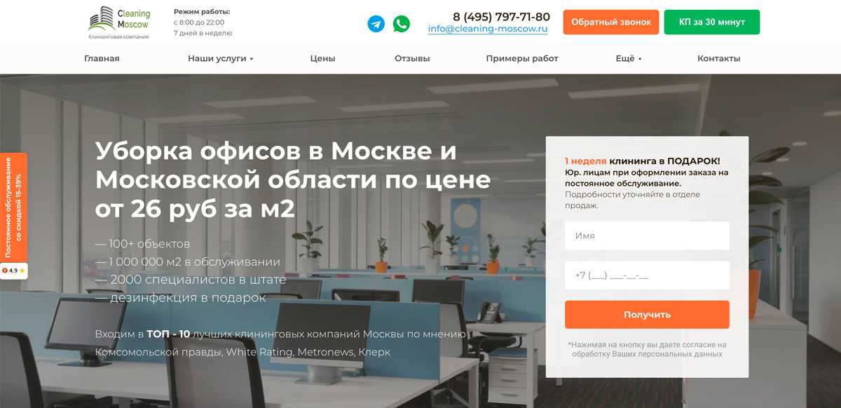 Сделайте свой офис чистым и ухоженным с помощью профессиональной уборки от «Cleaning Moscow»! Оставьте заявку на уборку офиса тут https://cleaning-moscow.ru/uborka-ofisov/ и согласуйте время и список услуг! Также мы предоставляем клининговые услуги по уборке квартиры, включая санузлы дома и химчистку. С нами убирать просто!