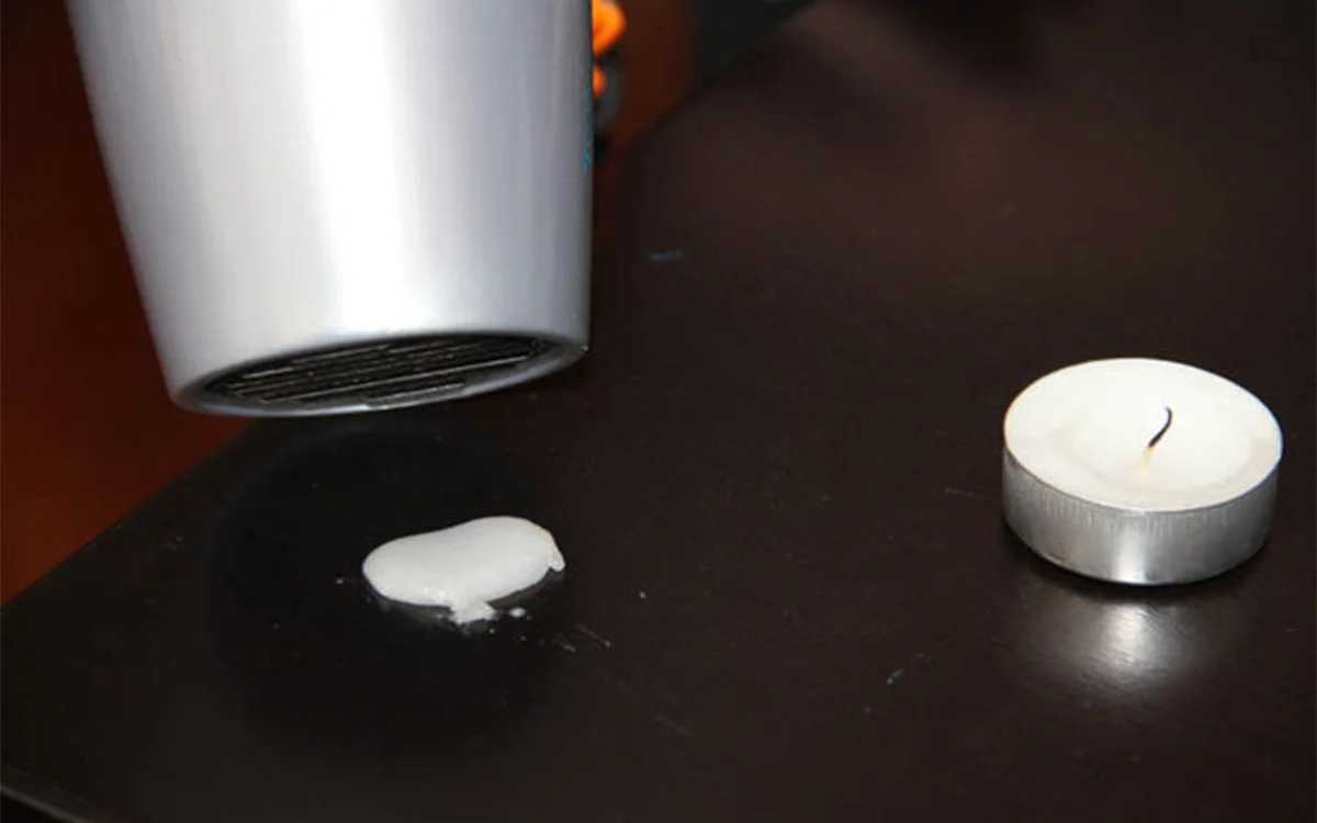 При необходимости удалить след воска с обуви или мебели, можно расплавить восковое пятно при помощи фена для волос.