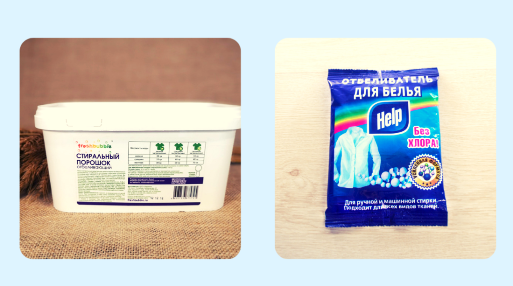 Кислородные отбеливатели актуальны даже для самых застиранных вещей. Они помогают поддерживать комплекты в идеальном состоянии сразу после приобретения и восстанавливать сияющую белизну после некоторого времени носки.