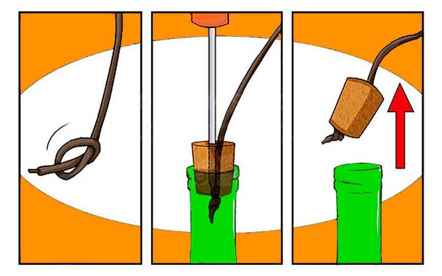 Чтобы вытащить пробку с помощью шнурка, необходима некоторая сноровка