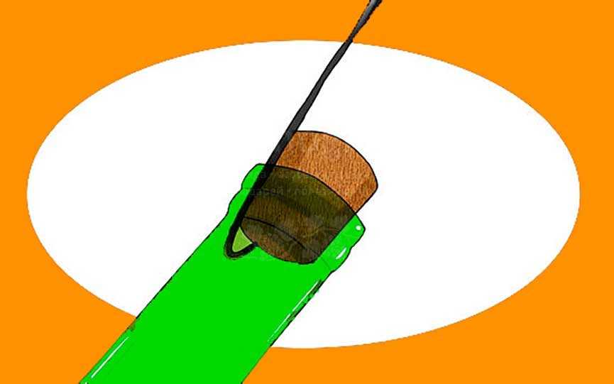 Твёрдыми или острыми предметами не стучим — нам же не нужна разбитая бутылка с разлитым содержимым, испачканные стены, пол и одежда. Если пробка не торопится вылететь и покинуть бутылку, предоставив нам доступ к вину, пора применить другие способы.