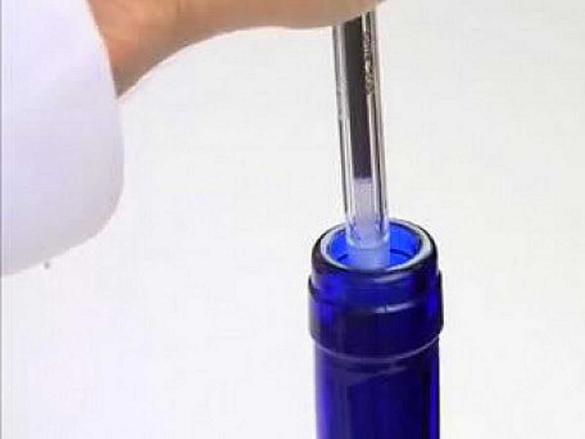 В процессе опускания пробки, жидкость просачивается в образовавшиеся пустоты и поднимается. Тогда вино сливают в бокал, и продолжают давление, пока заглушка полностью не опустится и не откроет проход.