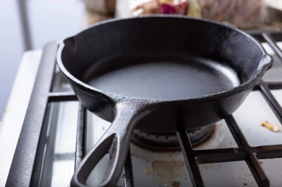 Во время прогрева сковородки необходимо запустить вытяжку, чтобы на кухне минимизировать скопление копоти и дыма. Лучшим вариантом является осуществление нагрева нагара с помощью открытого огня на улице.