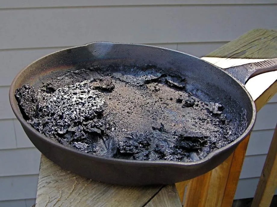 Несмотря на выделение неприятного запаха, термический способ – это эффективный метод. Он позволяет удалить нагар с наружной стороны и изнутри сковородки.