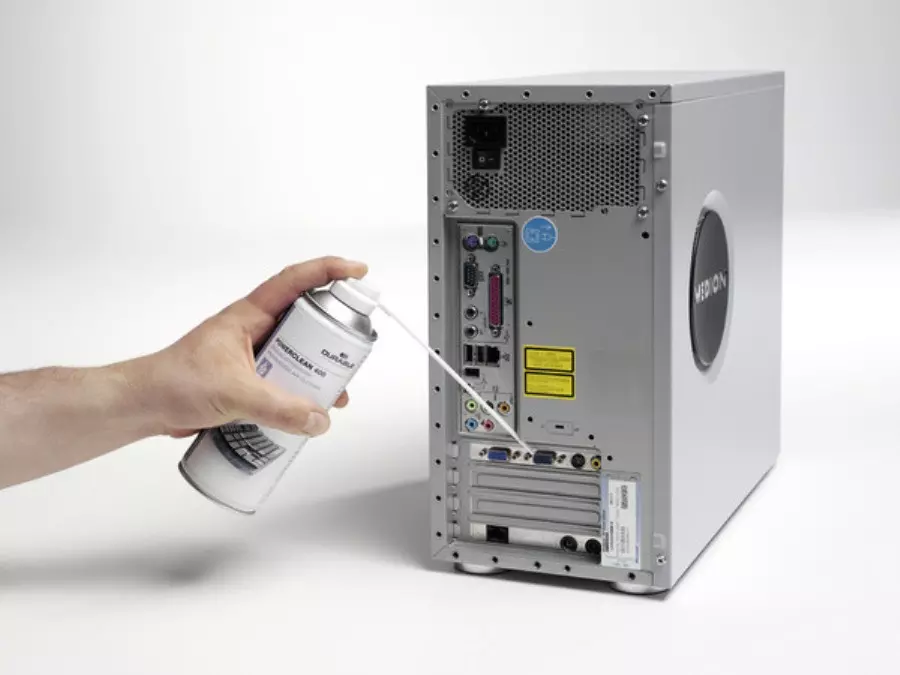 — Сжатый воздух в баллоне удаляет пыль из труднодоступных мест, таких как углубления в мониторе.