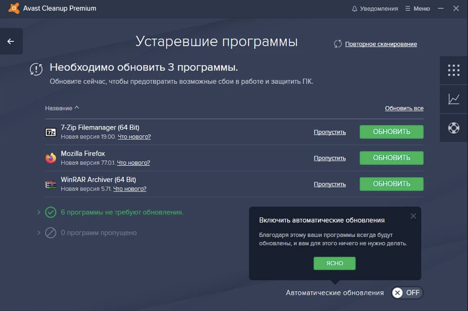 Если хотите сэкономить время, вы можете использовать функцию Обновления программ. Она есть в нашем антивирусе Avast Premium Security и программе по очистке и оптимизации ПК Avast Cleanup Premium.
