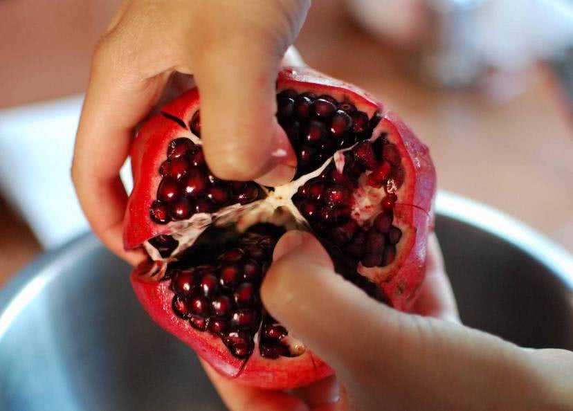- Аккуратно, стараясь не повредить целостность секций с зернышками, раскрывают гранат медленными движениями.